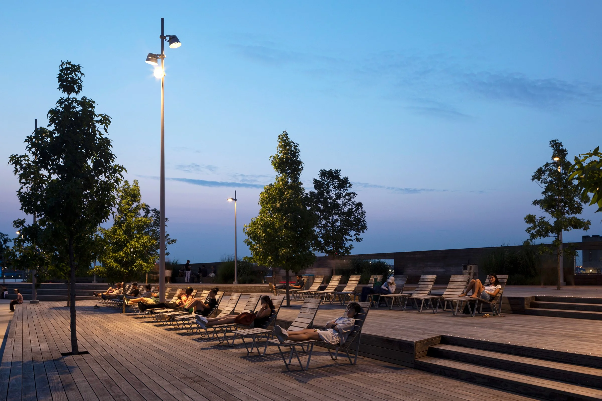 Located in the Hudson River Park near Tribeca, the 2.5 acre pier has a unique mission to bring to life the invisible dynamics of the ecologically sensitive Hudson River Estuary, The design includes a habitat walk through five indigenous ecological zones: woodland forest, coastal grassland, maritime scrub, rocky tidal zone and the river itself. The pier provides opportunities ecological education and leisure and recreation for people of all ages.